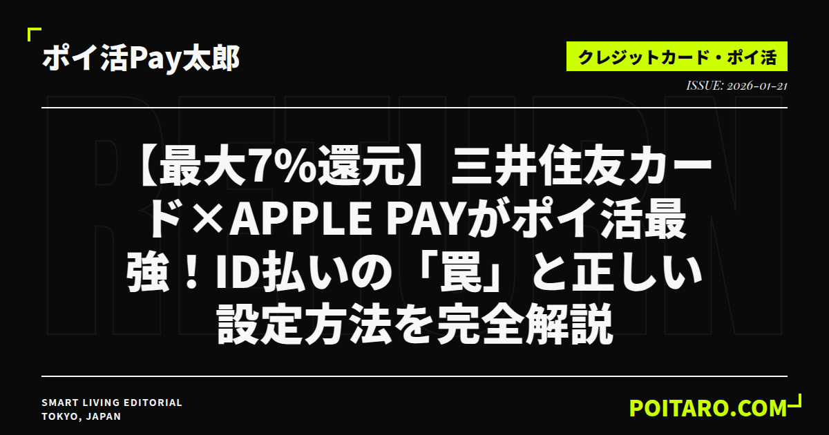 この記事では、三井住友カードとApple Payを組み合わせて最強のポイ活を実現するための「正しい設定・支払い方法」から、さらに還元率を高めるための「Vポイントアッププログラム」の攻略法まで、余すことなく完全解説します。