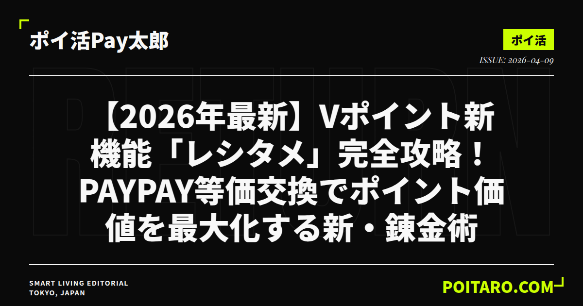 それが、2026年2月1日にCCCMKホールディングスから発表・開始されたレシート買取型新サービス「レシタメ」と、2026年3月24日に施行された「PayPayポイントへの等価・相互交換ルート」の組み合わせです。筆者も早速このルートを開拓しましたが、日常の買い物がそのまま現金同等の資産に変わる感覚は、まさに2026年の新・錬金術と言えます。
