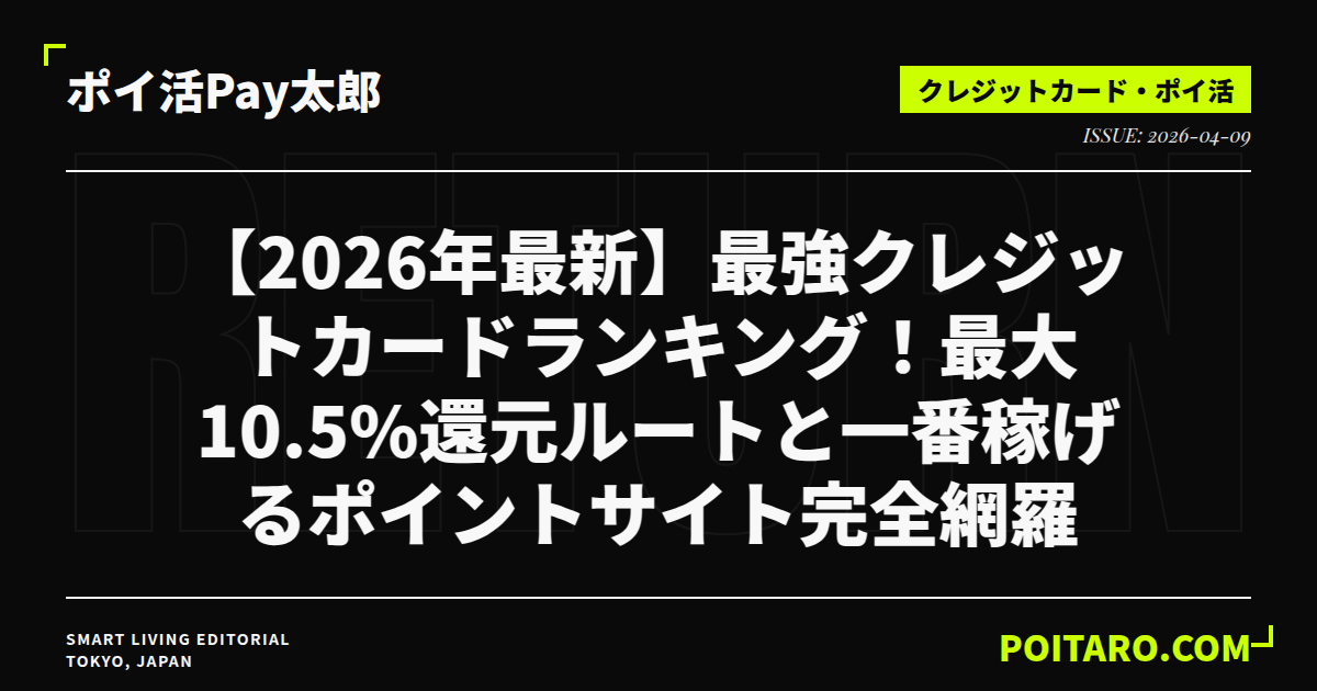 この記事では、長年ポイ活を研究してきた筆者が、2026年時点の最新データに基づき、本当に還元率が高く、使い勝手の良いクレジットカードと、ガチで稼げる最強ポイントサイトを厳選してご紹介します。今日から実践できる「最強のポイント獲得ルート」も解説するので、ぜひ最後まで読んでみてください。