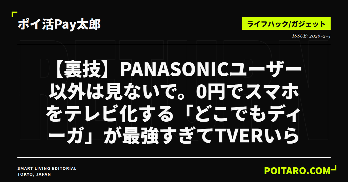 今回は、意外と知られていない、しかし知ってしまうともう二度と他の方法には戻れない、Panasonicユーザーだけの特権**「どこでもディーガ」**について、僕が熱く、そして冷静に解説していきます。