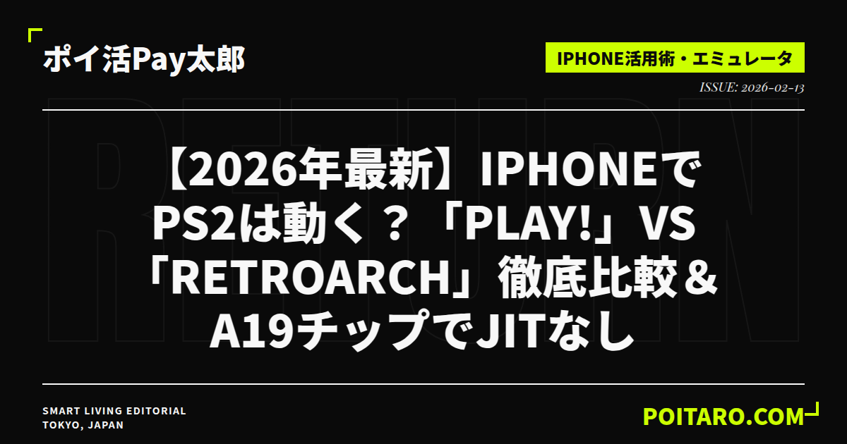 今回は、2026年2月時点でのiPhone×PS2エミュレータの最前線を検証。 「RetroArch」でPS2は動くのか?「Play!」なら遊べるのか? A19チップの実力を、実機で徹底的にテストしました。