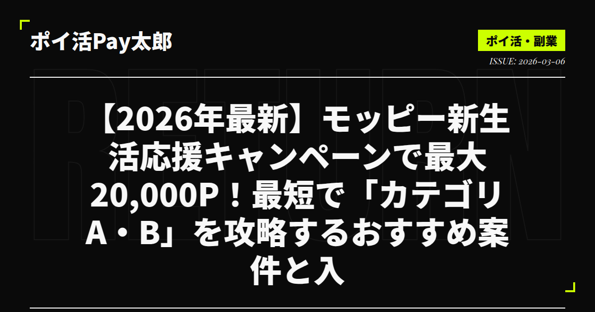 2026年3月、ついにポイ活界の王者「モッピー」が、過去最大級の『新生活応援キャンペーン』を始動させました。